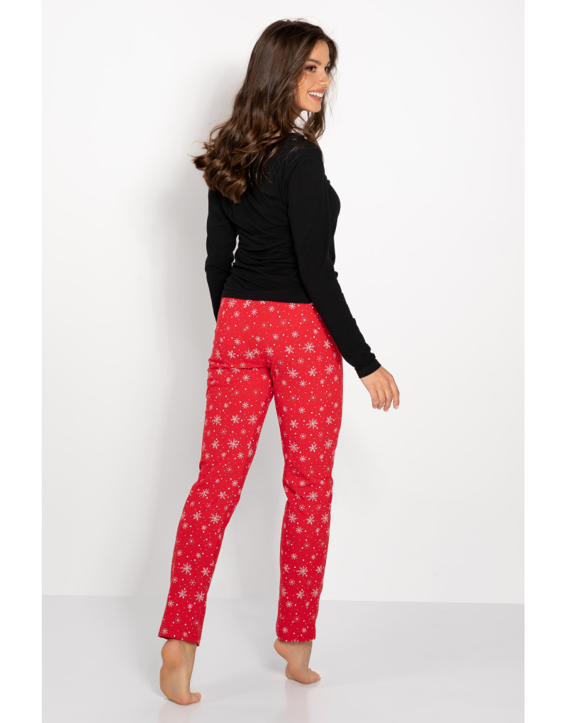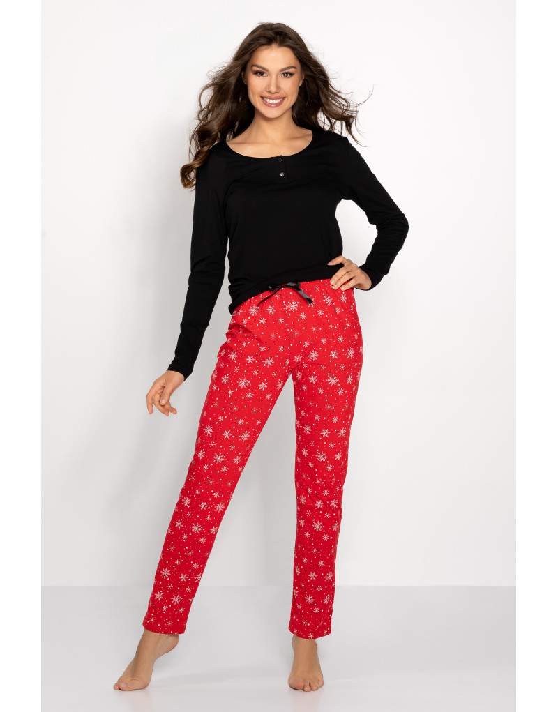 Wprowadź magię świąt do swojej garderoby z naszą świąteczną piżamą, która łączy styl, wygodę i najwyższą jakość! Bluzka z długim rękawem, uszyta z mieszanki delikatnej wiskozy i lycry, otula ciało przyjemną tkaniną, a półokrągły dekolt dodaje jej klasycznego, kobiecego wdzięku. Długie, dopasowane spodnie slim z naturalnej bawełny idealnie podkreślają sylwetkę, zapewniając jednocześnie pełną swobodę ruchu.