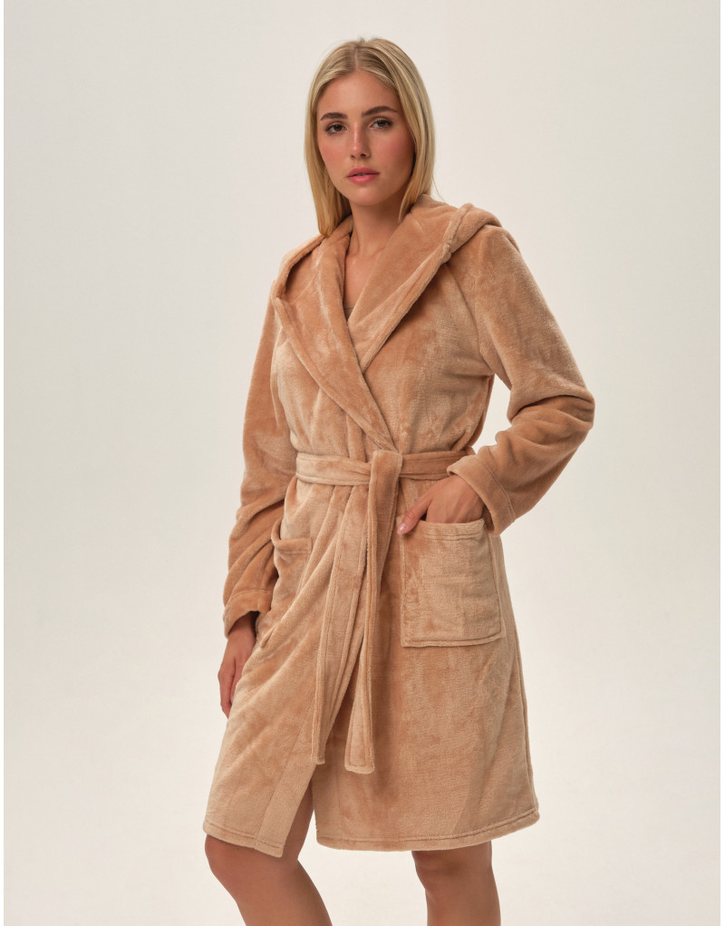 Beżowy szlafrok damski z uszkami – miękkość, urok i komfort w jednym. Poczuj się jak w bajce! Ten uroczy szlafrok damski w kolorze beżowym z kapturem ozdobionym zabawnymi uszkami to idealne połączenie wygody, stylu i odrobiny dziecięcej radości. Miękka, gładka tkanina otula ciało niczym ciepły koc, a kobiecy krój i długość przed kolano sprawiają, że wygląda nie tylko przytulnie, ale i wyjątkowo stylowo.