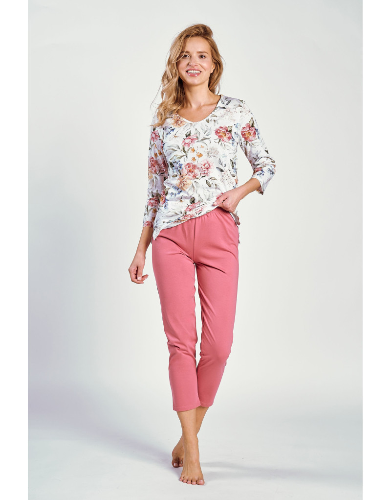 Piżama Louisa 3247 Biało-Malinowa