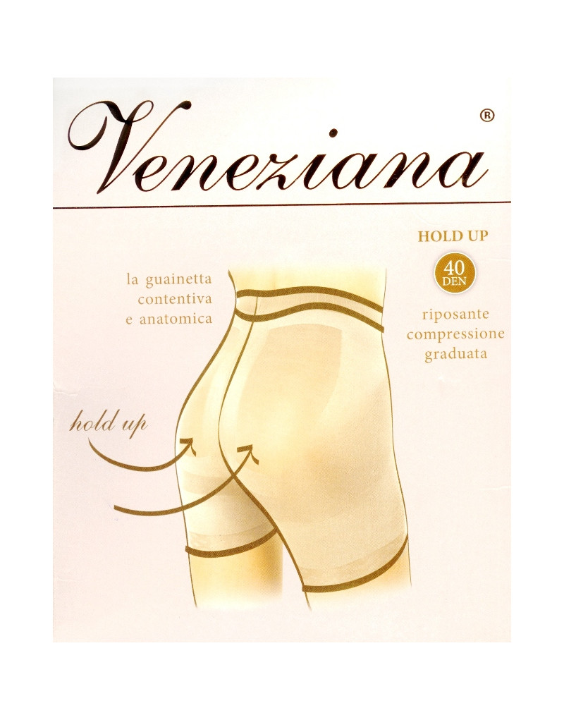 Modelujące rajstopy luksusowej marki Veneziana. Dzięki odpowiednim strefom delikatnie podkreślają anatomię ciała, lekko unosząc pośladki. Świetnie wpływają na krążenie krwi. Wykonane z wysokogatunkowej przędzy. Mały, bawełniany klin. Polecane każdej kobiecie. Grubość 40 DEN. Skład: 77% poliamid, 21% elastan, 3% bawełna.